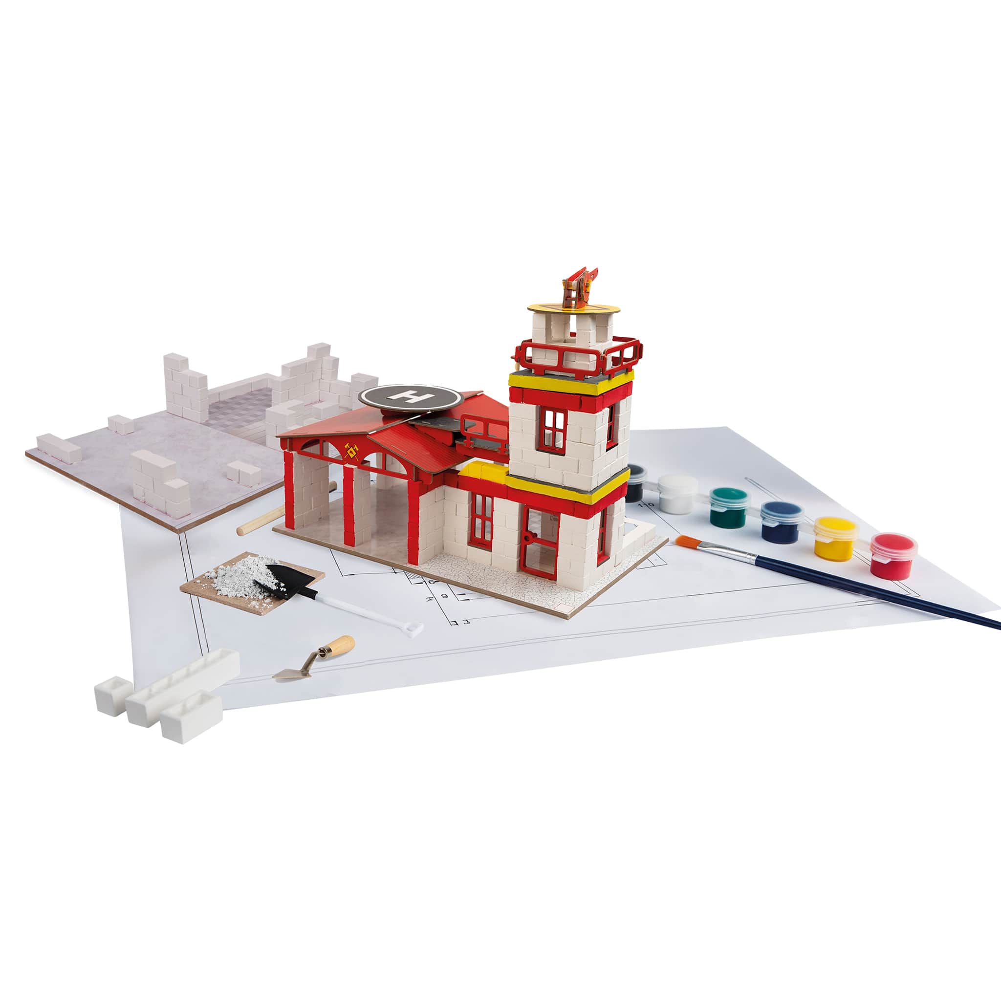 Save the day with the Fire Department kit! Build a fully functional firehouse using real construction materials like bricks, plaster, and putty. Now with wood elements that need precise assembly, you can refine your skills in accuracy and attention to detail. It’s a fun and educational way to explore fire safety, rescue operations, and teamwork while constructing a durable, real-world building.